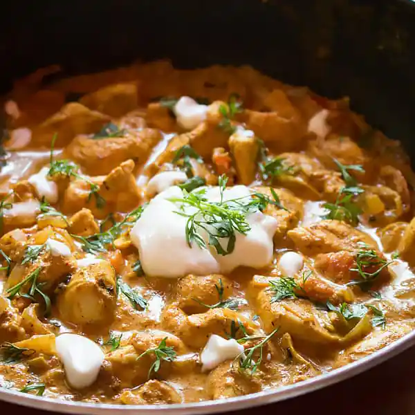This dish is cooked with yougurd, mint, raisins and coconut in fresh creamy thick sauce