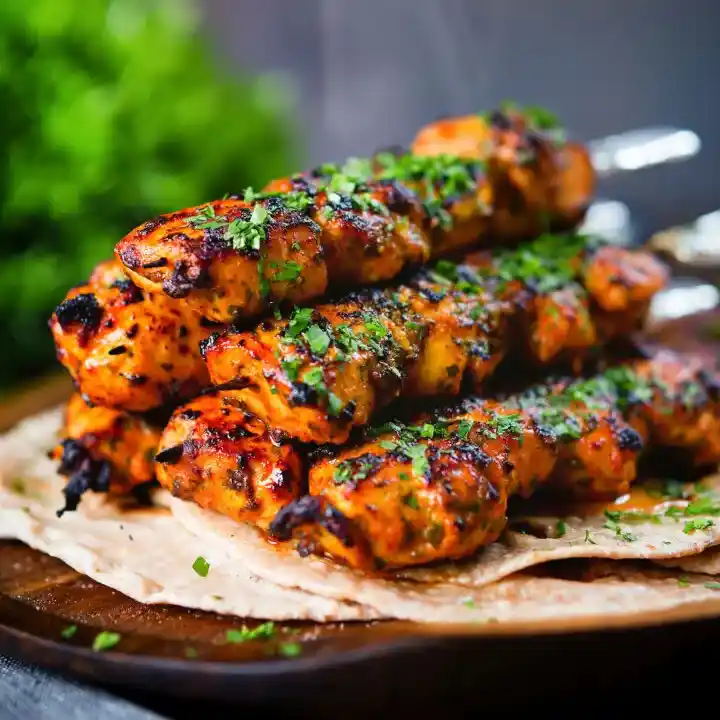 Succulent pieces of boneless chicken breast marinated in fresh yogurt & spices, seared in the tandoori oven.