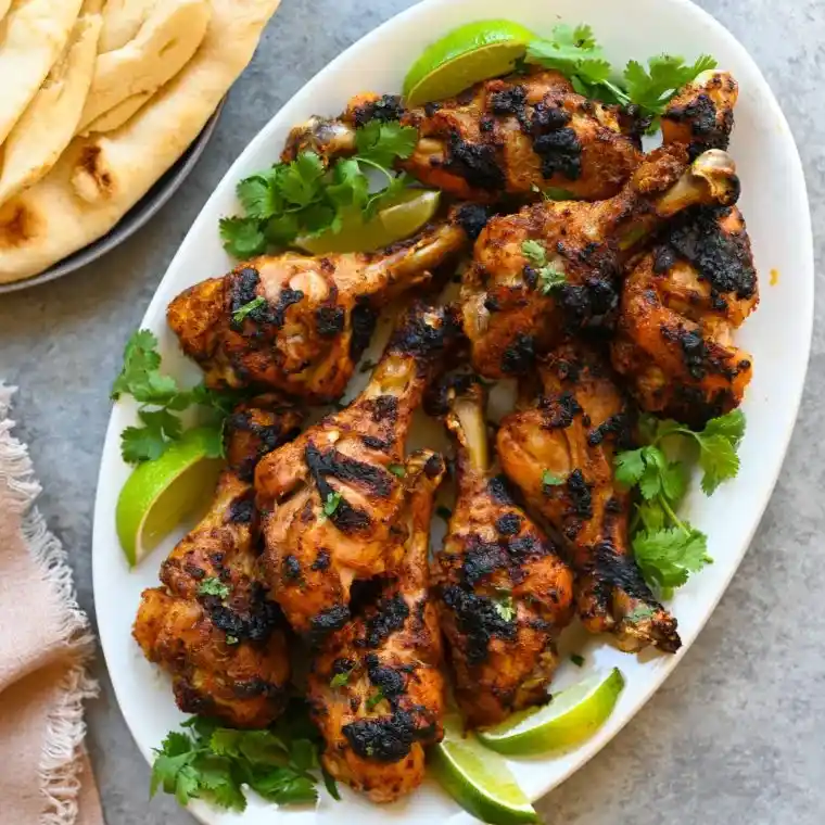 Tender chicken body bathed in tandoori masala, grilled in the clay oven
