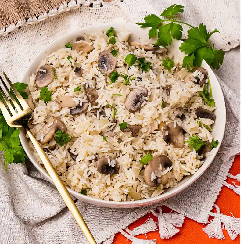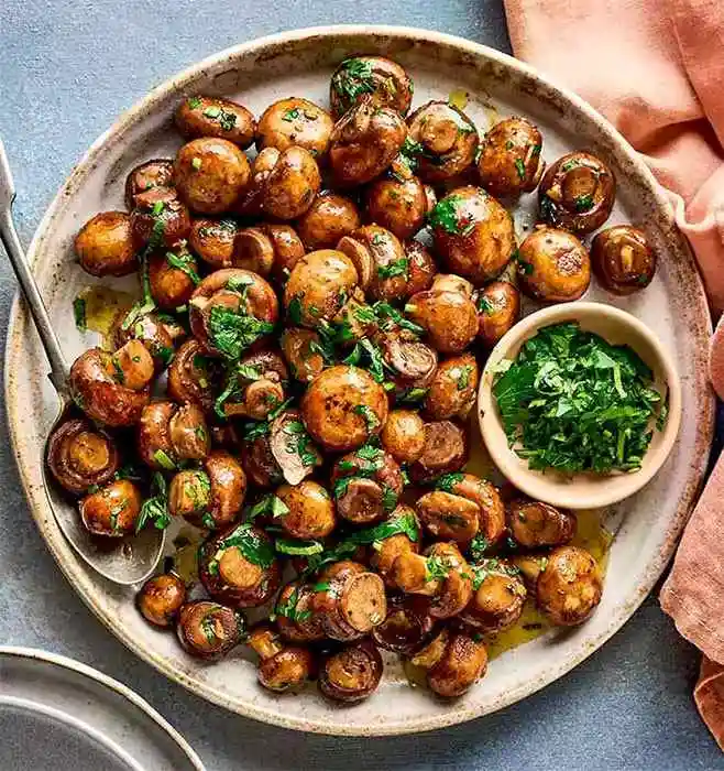 Mushrooms coated with lightly herbed butter mix and deep fried.