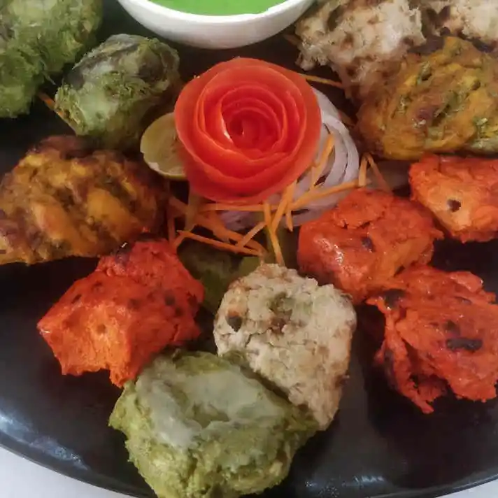 Chicken tikka, lamb tikka, sheek kebab, tandoori chicken